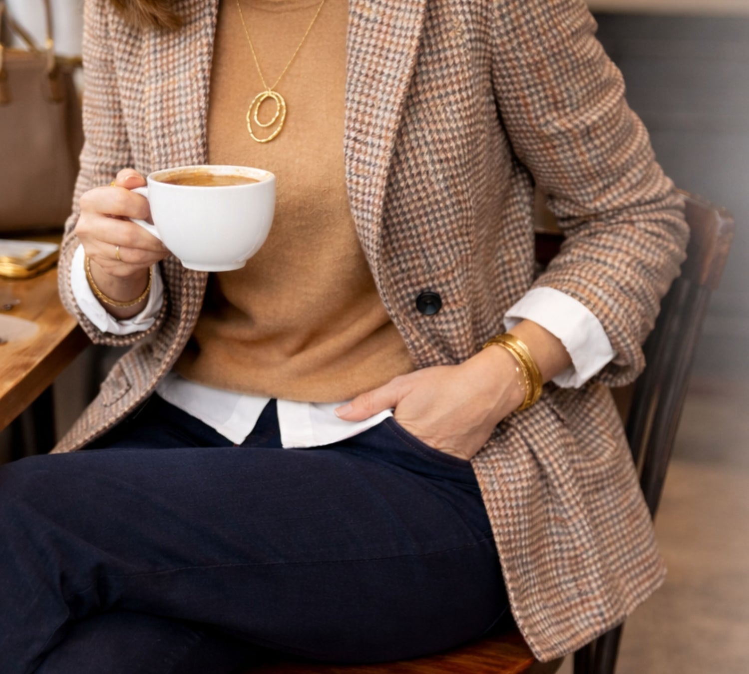 Below are four necklace styles we use as Visual Balance tools. Each one creates a different kind of support—so you can choose what your outfit (and your confidence) needs today.