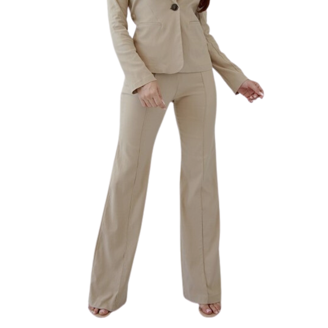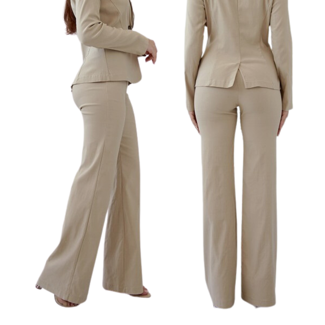 Pair these trousers with a cozy sweater for a casual and relaxed look, radiating a sense of ease and comfort, perfect for a day out or a laid-back gathering. For the most polished and professional appearance, combine them with our Tailored Blazer, projecting confidence and elegance in any office setting or formal event.