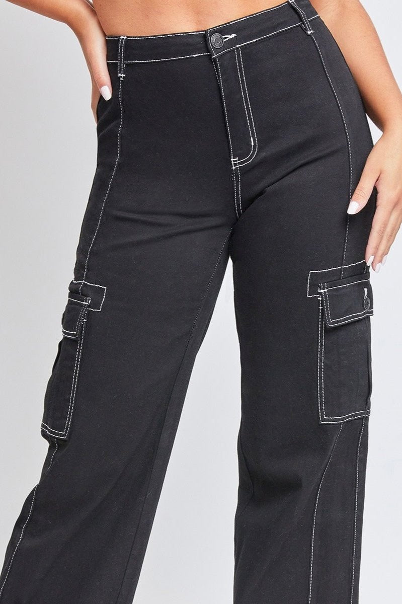 Fall in love with our must-have Junior High-Rise Cargo Pants with Front Seam Detail, your go-to piece for all seasons! These pants are thoughtfully designed to highlight your natural shape with a high-waisted silhouette and no front and back pockets. The vertical front seam creates an illusion of longer legs, ensuring you feel confident and fabulous wherever you go.