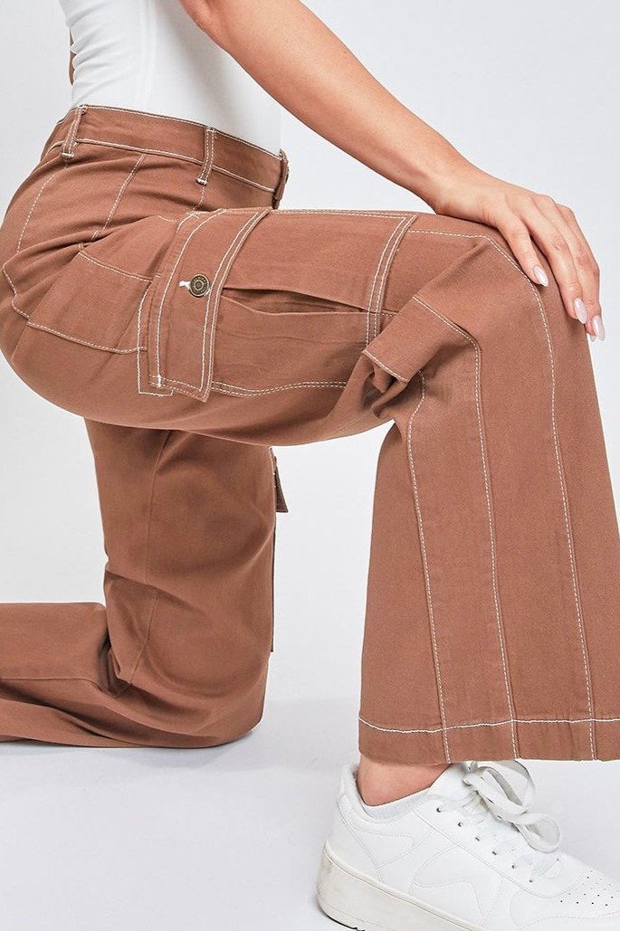 Enjoy the little details that make a big difference, like the contrast stitching throughout and flap button cargo pockets with pleated detail. The relaxed straight leg offers both comfort and an ultra-flattering look, making it a wardrobe staple you'll wear again and again.