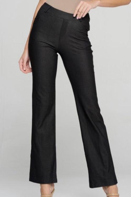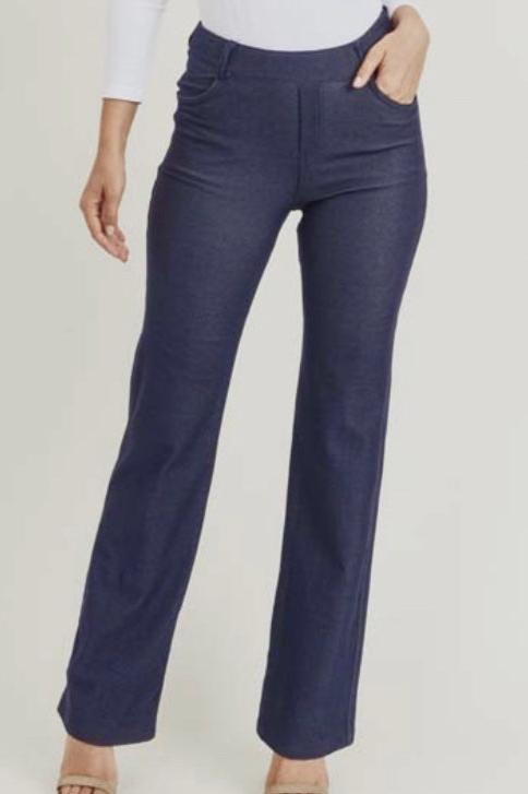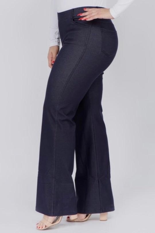 Say goodbye to uncomfortable and restrictive jeans and hello to the ultimate combination of style and comfort with our wide-leg jegging. Made from a lightweight and breathable cotton-blend material, these jeggings are perfect for all-day wear. The pull-on elasticized waistband and super stretchy fabric make them easy to slip on and move around in, while the jean-style construction and flare hem add a touch of trendy flair to your outfit.